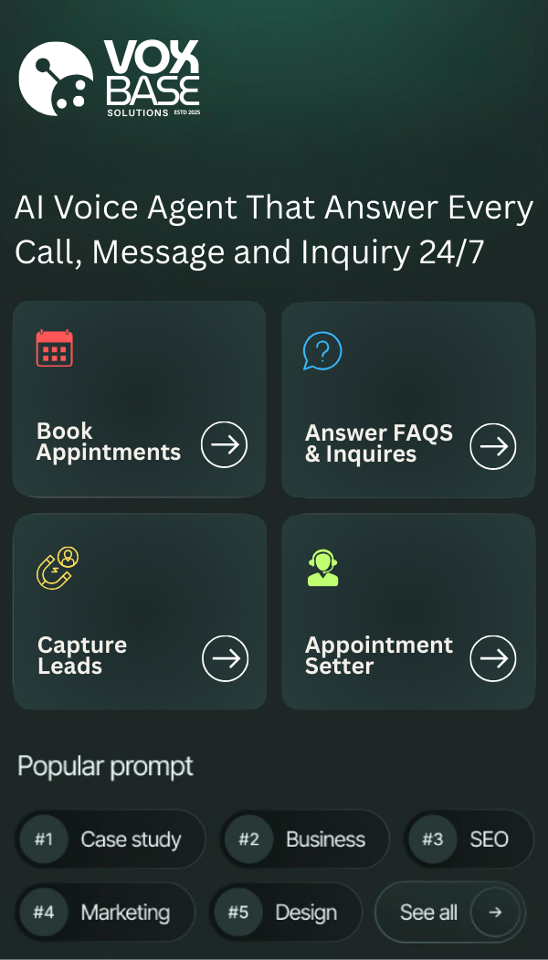 Every missed call is a missed opportunity. With VoxBase, your business stays active around the clock through intelligent AI agents that answer, engage, and convert callers in real time. More appointments, more customers, more revenue all automated.
